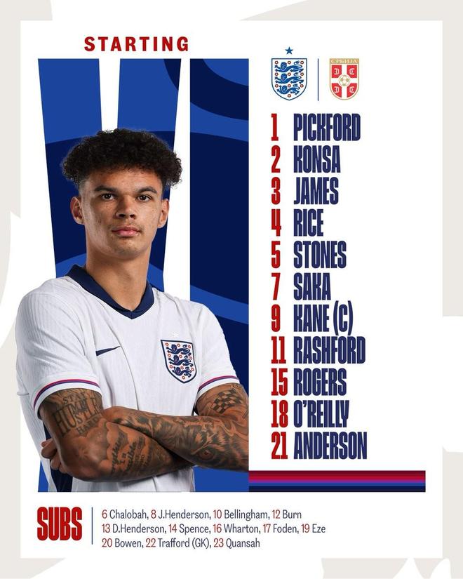 此役主场对阵塞尔维亚,20岁的尼科-奥赖利首发出战,这位曼城左后卫迎来英格兰成年代表队首秀。